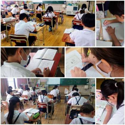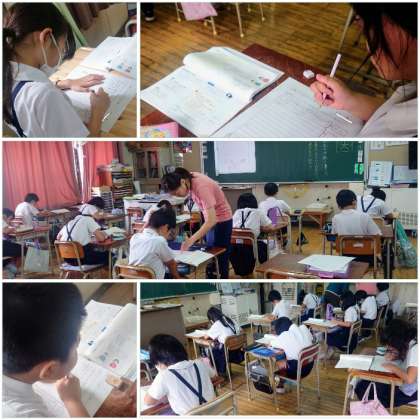 4年1組は国語「お願いやお礼の手紙を書こう」の学習。4年2組は算数「小数の引き算」の学習をしていました。