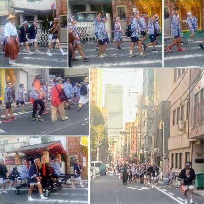 ハルカスをバックに太鼓や笛の音が聞えてきます