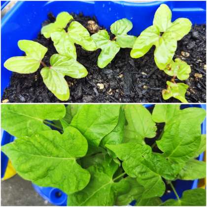 成長(せいちょう)したあさがおを観察(かんさつ)すると、はじめに出(で)てきた葉(は)っぱと、つぎに出(で)てきた葉(は)っぱの形(かたち)が違(ちが)っていました。それぞれなんという名前(なまえ)の葉(は)っぱでしょう。