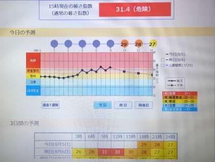 1日の行動を確認するときに、環境省から毎日でている「暑さ指数(WBGT)」を確認していますか?今日も9時ごろには既に「厳重警戒」域に入り、13時ごろには「危険」域に入りました。
