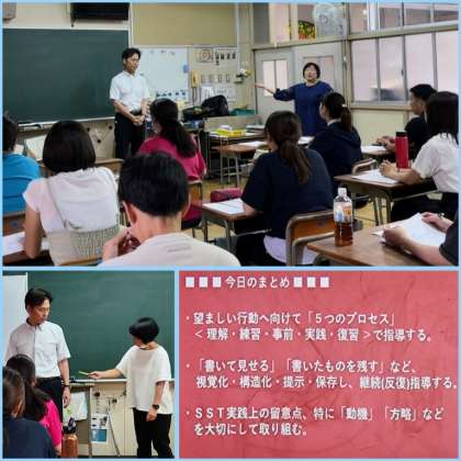 8月23日(水)の午前中は、特別支援教育の理解と指導力の向上を図るために、長居小学校の久保田指導教諭をお招きして、「特別支援教育研修会1」を行いました。