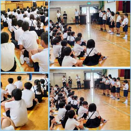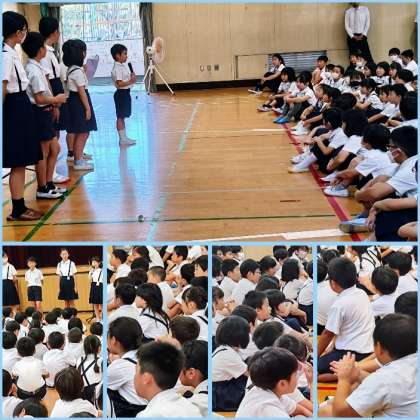 始業式では、各学年の代表が「夏休みの思い出・2学期のめあて」などのスピーチを行いました。