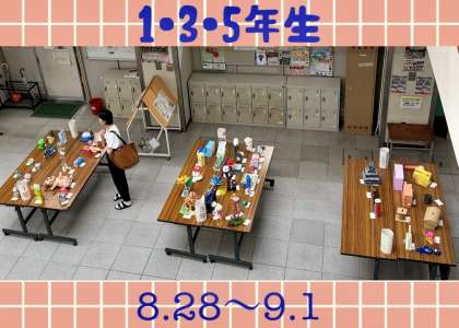 玄関ホールに、夏休みに作ったアイデア貯金箱等の図工作品を展示してあります。ご来校の際は、ぜひご覧ください。