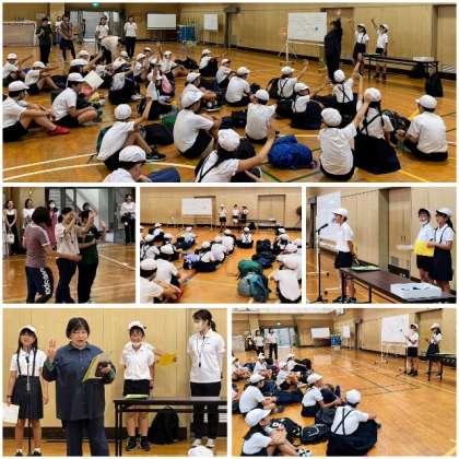 「豊かな自然に親しみ、美しい自然を大切にする心を育てる」等の3つの目的に「感謝の気持ちを行動に示そう」を加えて、一泊二日の自然体験学習がスタートしました。