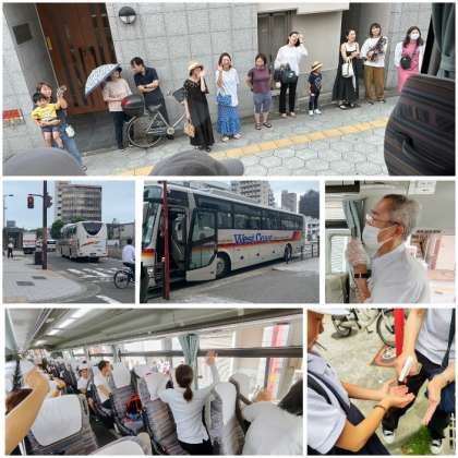 出発式が終わると、いよいよバスで「大阪市立信太山青少年野外活動センター」に向かいます。