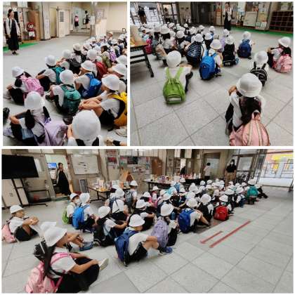 お天気が気になりますが、写真のように、出発前からしっかりと話を聴く態度や学習への意欲が見られました。