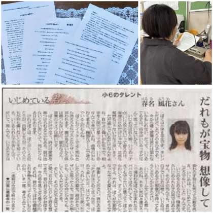 本校では、このねらいを達成するために、本校独自に本日を含めて年に3回「いじめ(いのち)について考える日」を設定し、教職員一同で各学年・学級に応じた取り組みを行っています。