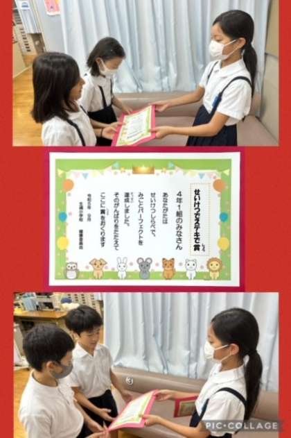 今月は、4年1組と6年2組が清潔調べでパーフェクトでした。