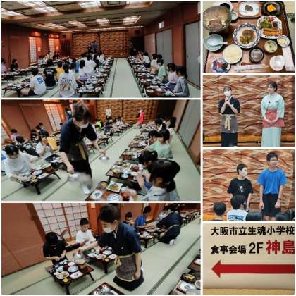 6年生は食事の会場に入ると「わぁ豪華!」と喜びの声を上げていました。