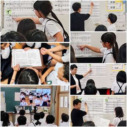 本日の6限目、音楽教育の理解と指導力の向上を図るために、本校の教員が小学校教育研究会音楽部の研究に先駆けて研究授業を行い、大阪市内の音楽部の先生が多数見に来られました。