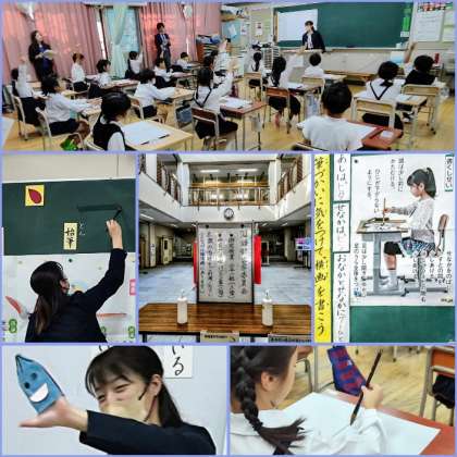 本日の5限目は、大阪市内の小学校教育研究会 国語部 書写委員会の先生がご参集くださり、2−1で石津先生が2月の総合研究発表会に向けた検証授業を公開しました。