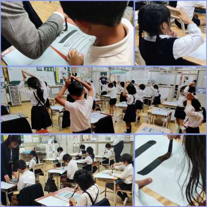 児童も、姿勢や筆の持ち方を意識しながらよく励み、横画の文字が、45分でみるみる上手に書けるようになりました。