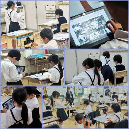 授業の途中では、児童が筆になりきって体を動かしたり、後半には、ICTを活用して、ペアで互いの書いている様子を録画したりすることで、以前に自分が書いた字や書いている時の様子を見比べてみるなど、児童の発達段階に無理のない授業展開を行うことができました。