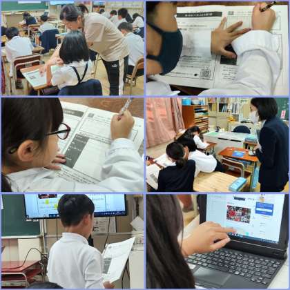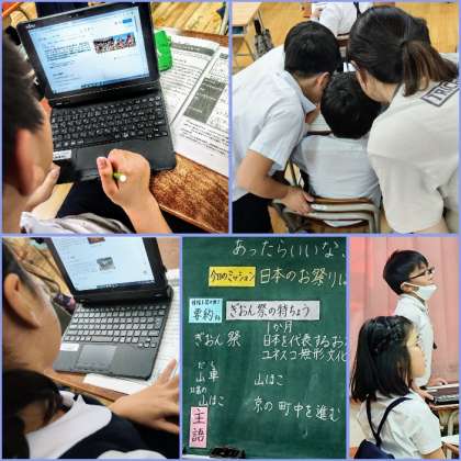 令和6年度から始まる「総合的読解力」の学習を始めるにあたって、本校では、モデル校として研究を進めています。4年生は教材「あったらいいな、こんな祭り」の学習の2時間目を行いました。
