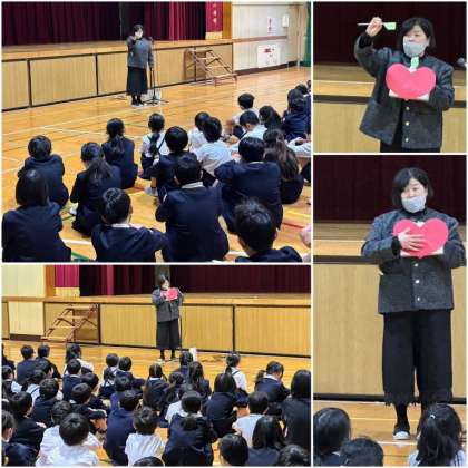 11月28日の児童朝会では、その3回目として講堂で校長講話を行い、その後で各学年・各学級で学習をしました。