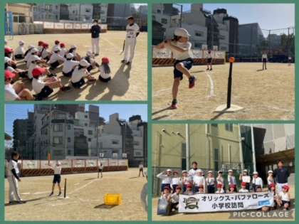 バットの持ち方やルールの説明を受けた後、Tボールゲームの試合をしました。バッティングのコツを教えてもらったため、普段の体育の時よりもボールを飛ばせる子がたくさんいました!また、守備では、ホームベースにいる吉田コーチにボールを上手く返せて、とても嬉しそうにしていました。