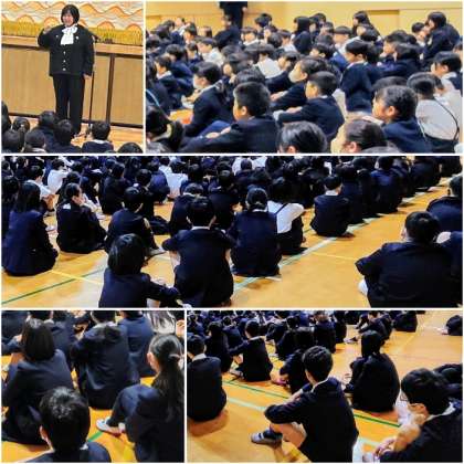 始業式の校長講話では、当初予定していた「新年」の話や「辰」の話に加え、能登半島を中心とした地震の状況から、自分の命を守るために普段からしっかりと人の話を聞く姿勢や、周りの状況を見ながら正しい判断ができたり、行動したりできる子になってほしいという願いを伝えました。
