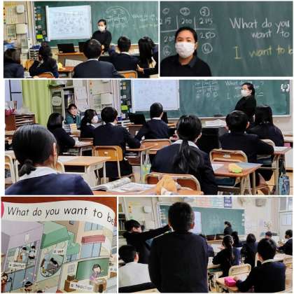 今日から3学期の外国語活動・外国語の学習がさっそく始まりました。教室に入ると、C-netのMaribel Valad-on先生(通称 ベル先生)のリードで、楽しく学習に取り組んでいました。