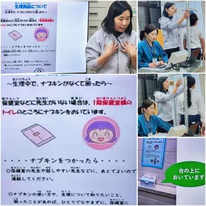 養護教諭の佐藤先生から保健指導を受けた後、一人ひとり身長と体重を測りました。