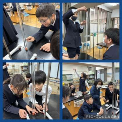 食塩や砂糖が水やお湯に溶けることは、生活の中で知っているけれど、溶ける様子をじっくり見たことはありません。今日は、細長い管を使って、入れた食塩が水に溶けていく様子を観察し、気づいたことを話し合いました。