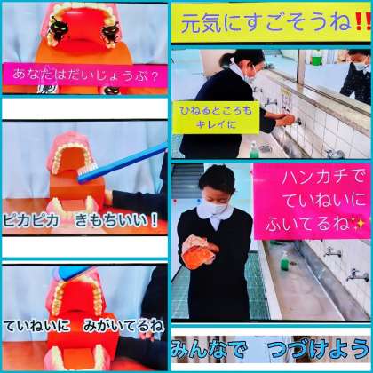 健康委員会は、生魂小学校のみんなが健康で安全にすごすためのポイントを示した動画を作成し、先週からエントランスのモニターで発信しています。