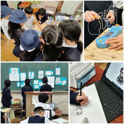 普段の授業とは違う様子に、ワクワクしながら説明を聞いたり、体験させてもらったりと楽しくグループで見学していました。