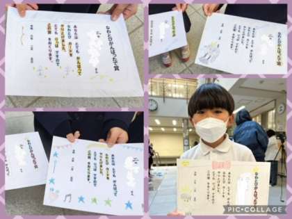 先月、20分休みの耐寒運動や体育の授業を中心になわとびの練習に取り組みました。今日の児童集会で、各学年の目標を達成した児童に、運動委員会が作成した表彰状が渡されました。最後に、4〜6年生が、二重跳びやはやぶさ跳び、三重跳びを披露。教室から、歓声や拍手が聞こえてきました。