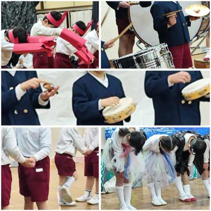 特に年長クラスの園児は、自分たちの役割分担の中できちんと行動し、歌と合奏・劇遊びもじょうずにできていました。
