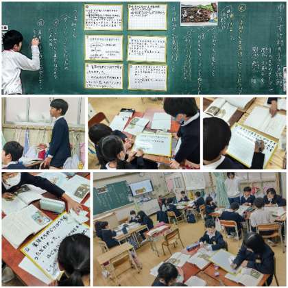 国語科の「ゆうすげ村の小さな旅館」では、場面の出来事や登場人物の想いを読み取り、物語のしかけを意識しながら読み取ることをめあてとして授業を行いました。