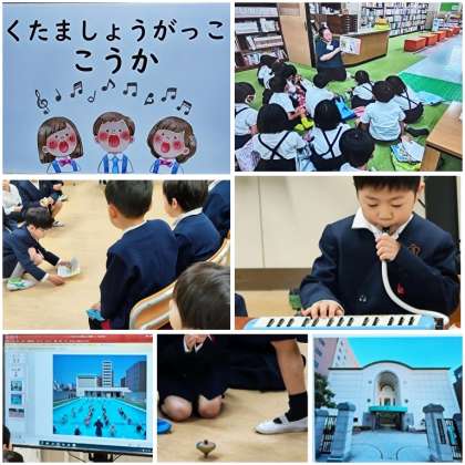 今日の2限目・3限目・5限目は、「生魂幼稚園」「四天王寺夕陽丘保育所」「うえしおキンダースクール」「たにまちナーサリー」の年長組との交流会でした。