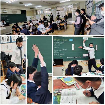 本日の6限目、社会科教育の理解と指導力の向上を図るために、本校の教員が天王寺区社会科主任会の代表として研究授業を行い、天王寺区内の先生が多数見に来られました。