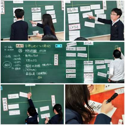 児童は、「地域の人」と「生き物」のカテゴリーから、メリットとデメリットについて考えていく中で、白神山地が日本を代表する天然林であることをふまえて、そこに係る人々の思いを考え、学習を深めていきました。
