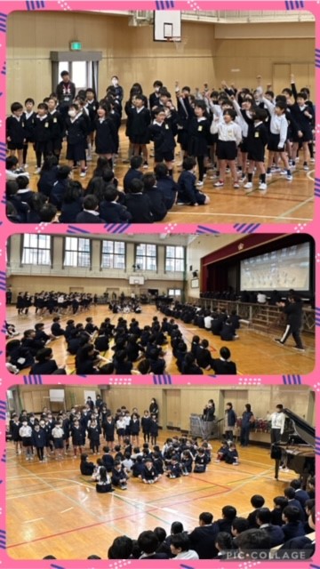 ◇ 4年生 昔の6年生とボディ・パーカッションで共演