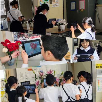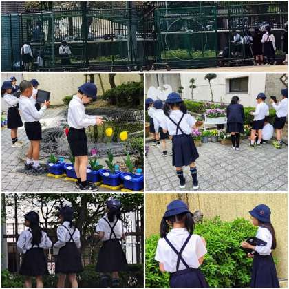 5年生と一緒に(偶然ですが)春みつけをしていました。