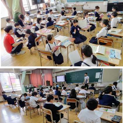 1組は算数、2組は国語の学習をしていました。