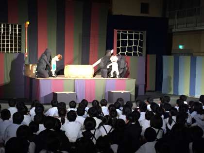 6日(金)は、人形劇団京芸を招いて、劇鑑賞会「漫才の星になるんや」を行いました。昨日とはうってかわり、大阪弁たっぷりのコミカルな展開に会場内は爆笑の渦でした。また、教室では来週からの創立140周年記念作品展に向けての作品作りが佳境に入っています。まさに学校中、芸術の秋です。