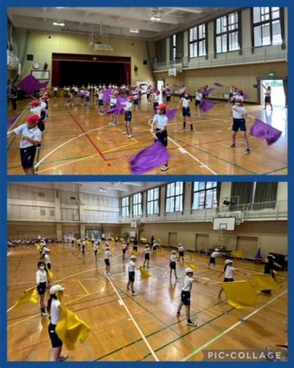◇ 5・6年生 団体演技(フラッグ)の練習