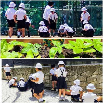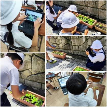 理科の学習で育てている植物の成長を観察しました。一人ひとりがタブレットで記録して、教室でまとめていきました。