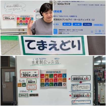 1回目の今日は、大阪府が説明している「SDGsってなんだろう」と17のゴールの内の、12・13をめざした「食品ロス」について、株式会社ケシオンから提供されている教育コンテンツ「SDGsラジオ」を活用して考えました。