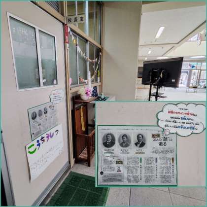 歴史的にとても大切なことなのですが、児童にお話しする機会がなかったので、校長室前に掲示しました。