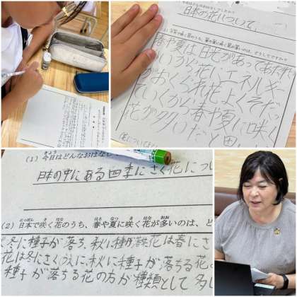 本日の校長講話では、ヒアリングスキルサポートとして、後で答える2つの質問を先に確認してから話を聴きました。テストでも、物語や説明文の問題を解くときに、先に問いを確認してから読むと答えやすくなる、という手法を「聴く」ことに応用してみました。