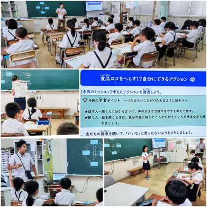 3年2組では、「食品ロスをへらす⁉自分にできるアクション」の最終授業でした。今回のミッションは、「考えたアクションを発表しよう」です。