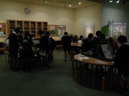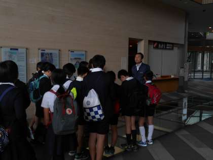 25日、6年生が大阪歴史博物館へ社会見学に行きました。まず学芸員の先生の案内で、復元された高床式倉庫の中を見学しました。太い柱や思いのほか広い室内にびっくりしました。次に地下の遺構展示室に入り、遺構の実物を間近で見ました。最後に博物館の展示をスタンプラリー形式で見学しました。「考古学体験コーナー」の遺物の復元コーナーが大人気でした。