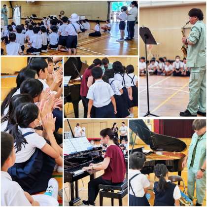 「名探偵コナンのメインテーマ」と「情熱大陸」の2曲の演奏に、児童は大喜び!