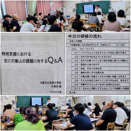 今回は、テーマを「特別支援における、主に行動上の課題に対するQ&A」として、現状に応じた支援の在り方について指導者が抱える課題に1つ1つ丁寧に答えていただきながら研修を進めていきました。