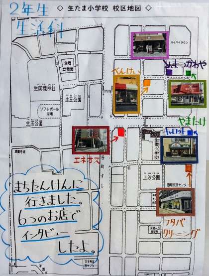 廊下の壁には、先日の「まちたんけん」の地図の掲示があります。