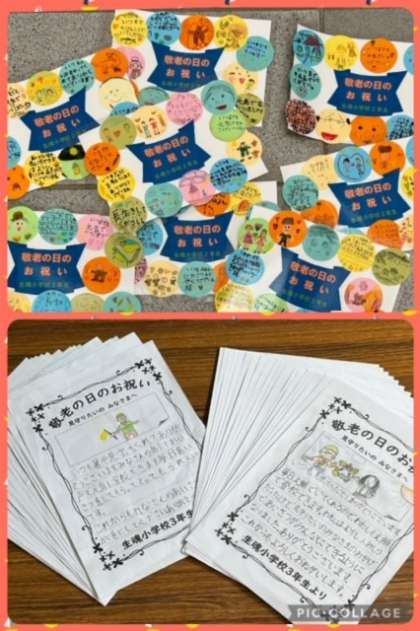 9月16日は、「敬老の日」です。今年も2年生がお祝いカードを作成し、3年生が見守り隊の皆様へお礼の手紙を書きました。
