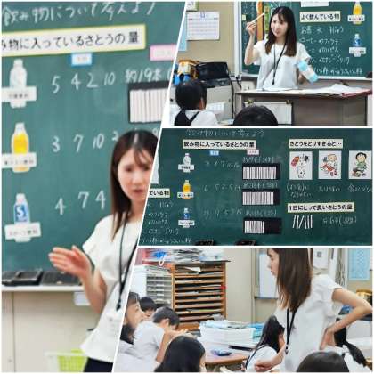 飲料水に含まれる糖分を砂糖の量として考えたとき、児童の想像以上に多く含まれていることにびっくりしていました。