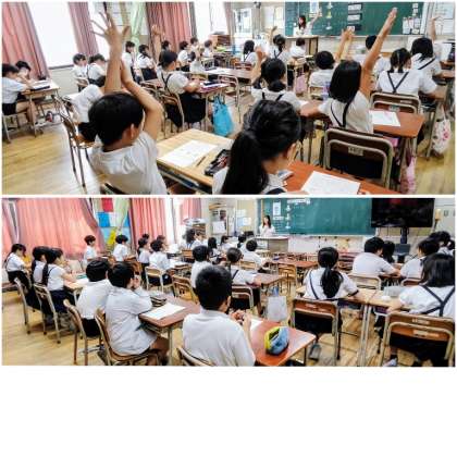 五条小学校の栄養教諭の先生が来校くださり、「飲み物について考えよう」をテーマに清涼飲料水に含まれる砂糖の量についてみんなで考えました。