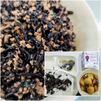 今日の給食では、牛ひじきそぼろに使われています。